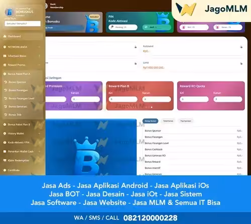 Jasa Website MLM Bangkalan Profesional dari Jago MLM dilengkapi dengan berbagai fitur essential yang dibutuhkan untuk operasional bisnis network marketing modern. Sistem yang kami kembangkan tidak hanya mencakup fungsi basic, tetapi juga advanced features yang meningkatkan competitive advantage bisnis Anda. Jasa pembuatan website MLM kami fokus pada functionality dan user experience yang optimal.